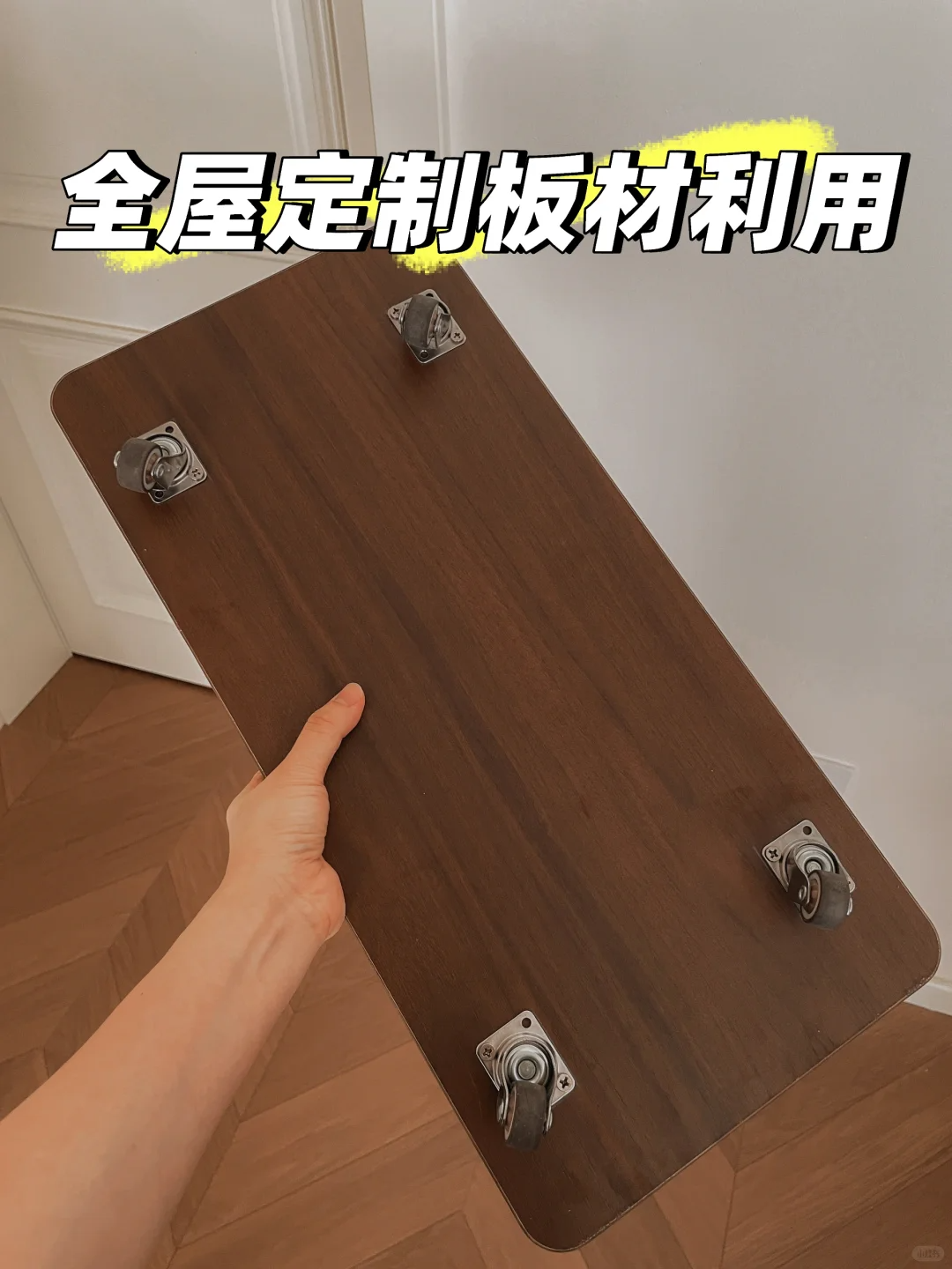 除了制作简单的可移动售价以外,还可以利用万向轮制作一个可以移动的收车方法更加简单,只要家里有装修的时候剩余板材把万向轮固定在底部就可以了,