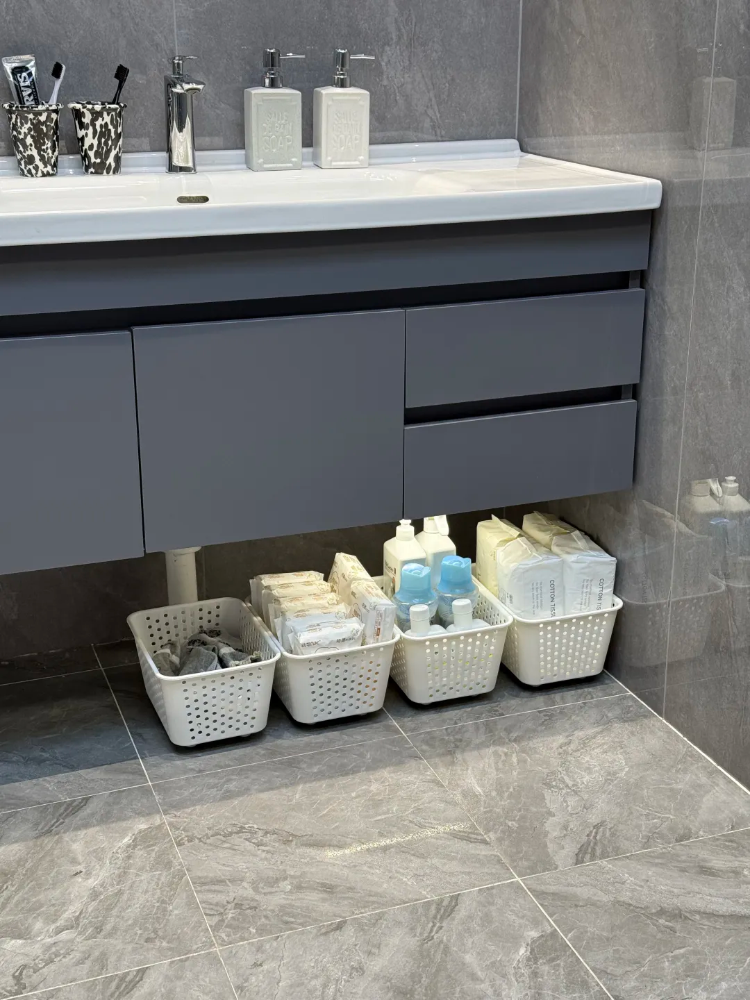这样收纳筐就可以移动了,来回抽取特别方便,成本才几块钱。