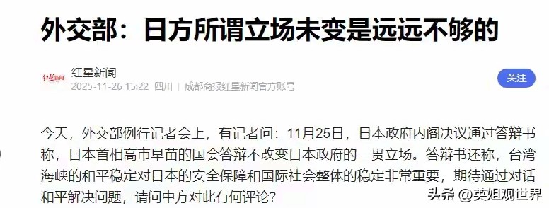 另一方面,西方国家对于日本近期言论和动作增添了距离感。在高市早苗发表极端言论后,英法等媒体公开警告日方勿轻举妄动,别让地区局势恶化。西方国家并未如日方期望积极响应日本“诉苦”。