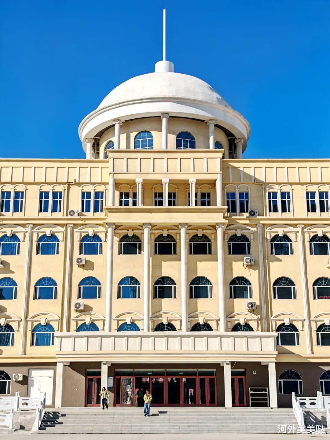 校园里的民族团结楼以其独特的建筑风格惊艳众人。穹顶融入蒙古包元素,蓝白配色灵动雅致,金色尖顶添了份庄重,把民族文化与现代美学揉得恰到好处。它不仅是地标,更藏着民族团结的心意。