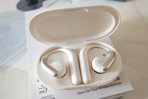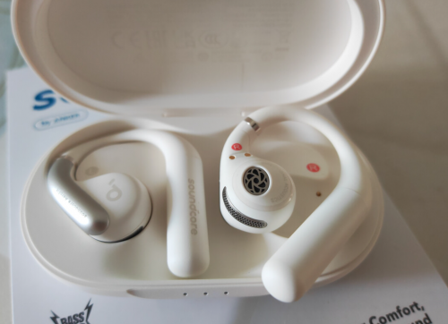 配合柔软材质的耳挂与轻量机身,初戴感觉贴合耳廓、舒适度不错。日常通勤或短时间佩戴几小时没有大问题,但剧烈摆头或跳跃动作时耳挂会轻微滑动,需要调整,材料透气性不差,但流汗以后接触处略显湿润,需要擦汗以维持舒适感。