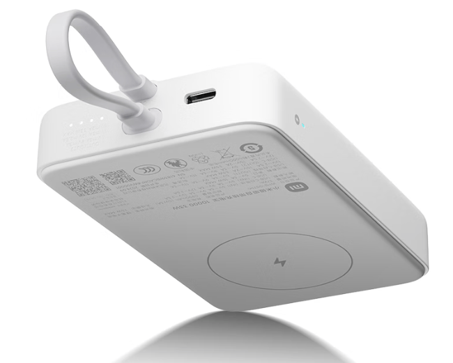 这款小米主打均衡,外形不大,带磁吸和自带线,在通勤场景下使用会比较轻松。无线磁吸的吸附力在行走或地铁里都不太会松动,苹果用户贴上就能充,不需要额外的线材。10000mAh 的容量在手机续航较吃紧的日常中够用,大多数机型能补到一到两次电。