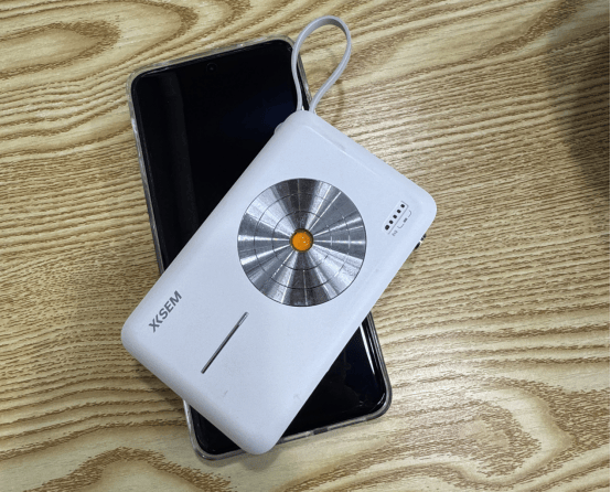 它的核心卖点就是薄。0.88cm 的厚度贴在手机背后更像多加了一层壳,口袋里不明显鼓包,夏季没有负担。磁吸强度在实际使用中比想象中靠谱,背着手机走动、不小心碰一下都不太会掉,稳固感比一般磁吸小电宝好一些。