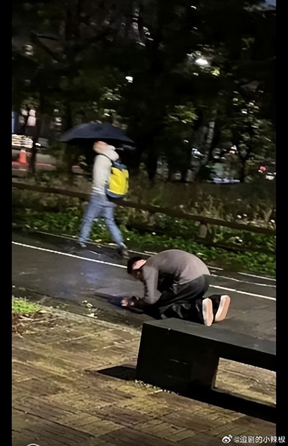 ▲大S离世,陆网疯传一张汪小菲雨中跪地照,但汪小菲与其母张兰抖音被禁。 (图/翻摄自微博)