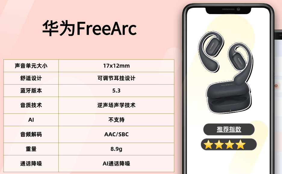 华为FreeArc采用C形桥耳挂设计,平衡佩戴稳固性与舒适度。开放式结构确保用户在聆听音乐时能持续感知环境声,提升户外通勤与运动时的安全性。