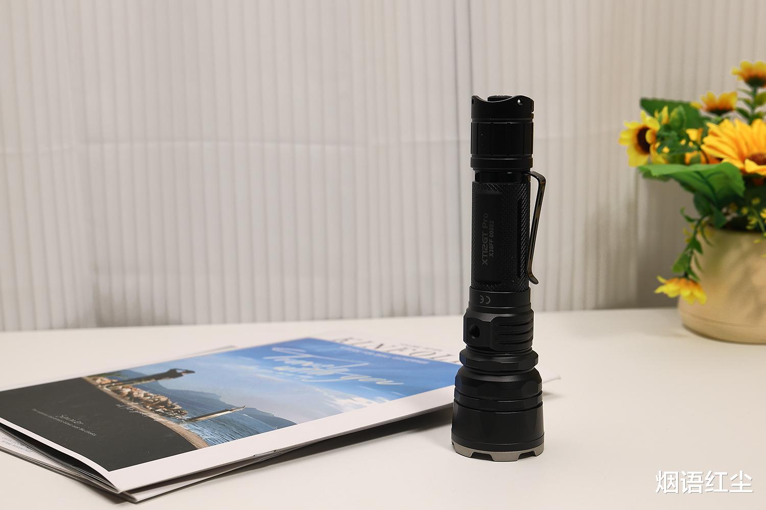 凯瑞兹XT12GT PRO的外观设计兼具实用性与颜值,经典的战术风格搭配精致的工艺,拿在手上满满的高级感。它的整体尺寸为27.5*45.2*171.2mm,筒身修长,灯头呈微喇叭口状散开,兼顾了握持手感与便携性,单手握持毫无压力,放进背包侧袋、口袋也不会过分占地。净重仅171g(不含电池),搭配电池后约243g,轻量化的设计让长时间携带也不会觉得累赘,同时又不会因过于轻巧而失去筒身应有的强度,拿捏住了户外装备“轻而不弱”的精髓。