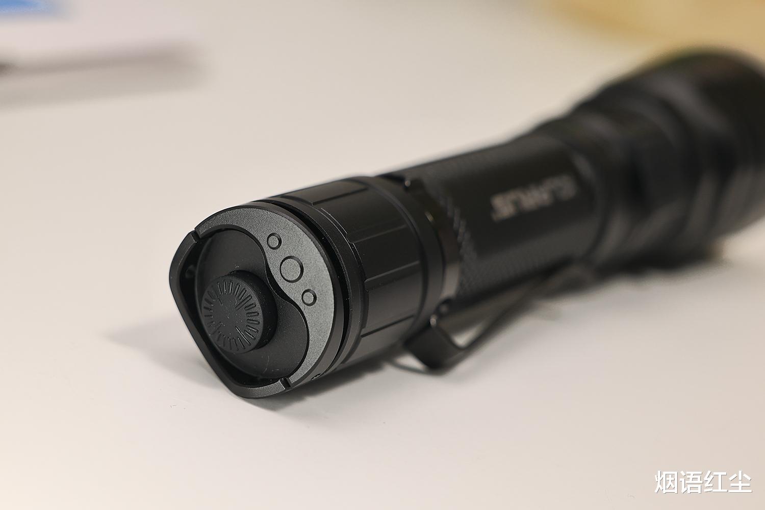 作为一款战术级手电,凯瑞兹XT12GT PRO的操作设计堪称精妙,尾部的战术双开关搭配双模式设计,让操作变得简单又灵活,就算戴着手套也能轻松操控,真正实现“盲操作”。主开关为10mm直径的胶帽设计,表面有放射状防滑纹,按动手感清晰;副开关为侧面月牙状压板式金属按键,带有三个防滑点,两个开关位置不同、手感区分度大,轻松就能分辨,避免误操作。
