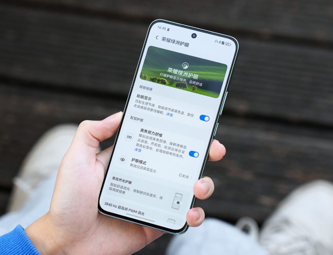 不可否认,这款荣耀GT在做工设计方面和一些竞品相比确实要逊色一些,中框是塑料的,机身并没有IP68防水。然而它的护眼效果可以说是去年同档位手机中的第一梯队。相比红米K80、一加ACE5、iQOO Neo10等机型,屏幕护眼效果都要更胜一筹,做到了3840Hz超高频PWM调光,以及4000尼特的局部峰值亮度。使用的短焦指纹确实也遭到了一些网友的吐槽,但对比侧边指纹也算良心。