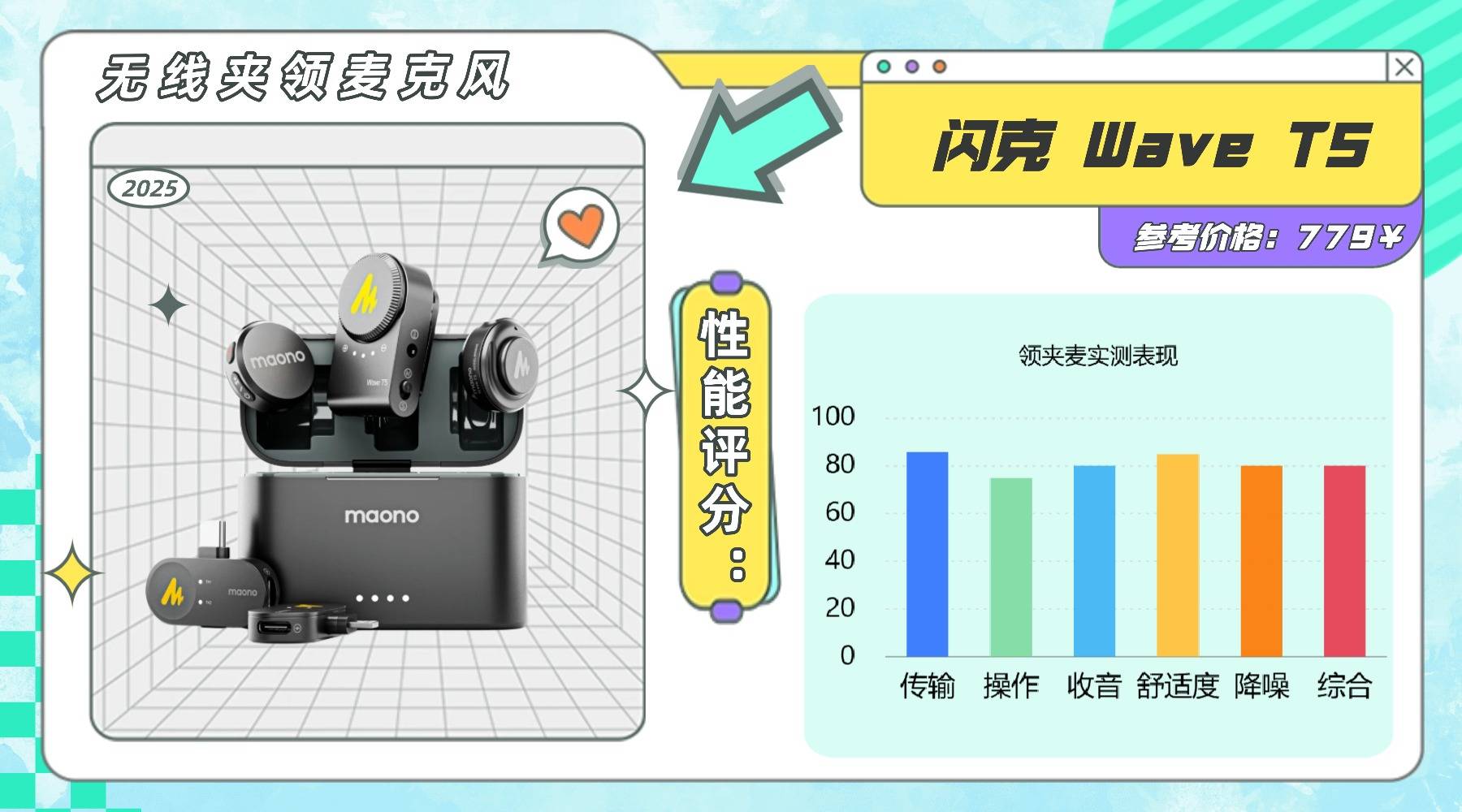 新兴消费级品牌推出的平价无线领夹麦,表现稳定,主打基础收音功能和佩戴舒适度,适合刚接触创作、只需要基础收音功能的纯新手,预算有限且看重佩戴体验的用户。