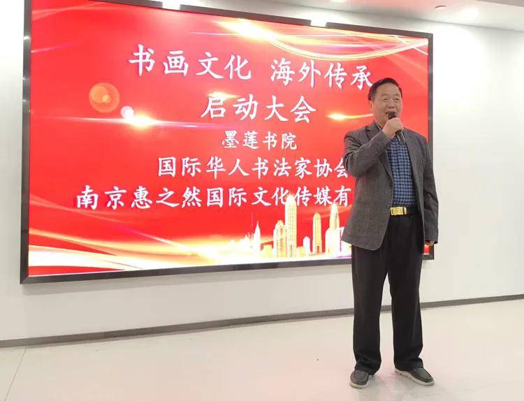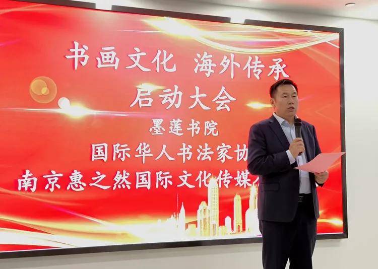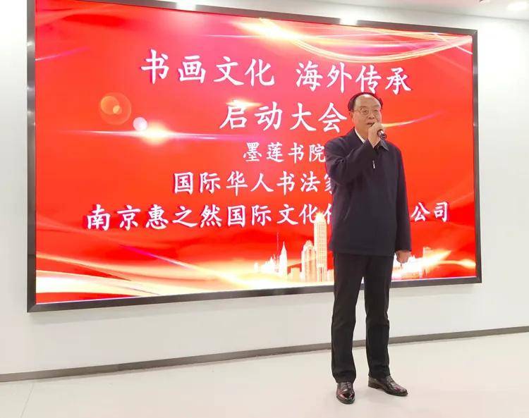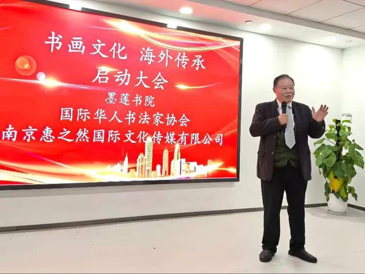 在立冬当天的寒流中,江苏书画界涌现出非常值得关注的一股暖流。由国际华人书法家协会、南京惠之然国际文化传媒有限公司旗下墨莲书院主办的“书画文化 海外传承”启动大会,于11月7日在南京圆满举办。这场承载着重要文化使命的盛会,宛如一颗璀璨的星辰,在文化传承的时空中闪耀出独特光芒。这场书画文化盛会,彰显出“起点高、格局大、团队强”的显著特征。