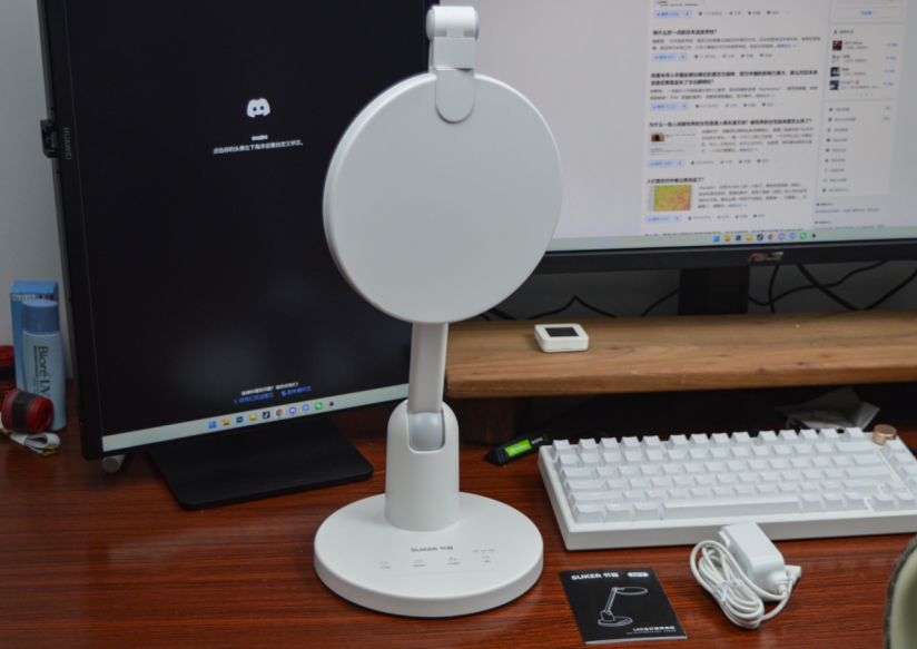 外观方面,通体洁白的设计非常简约,触感细腻,很有质感,颜值百搭,无论是办公桌还是书桌都很耐看,配件是电源适配器及说明书。