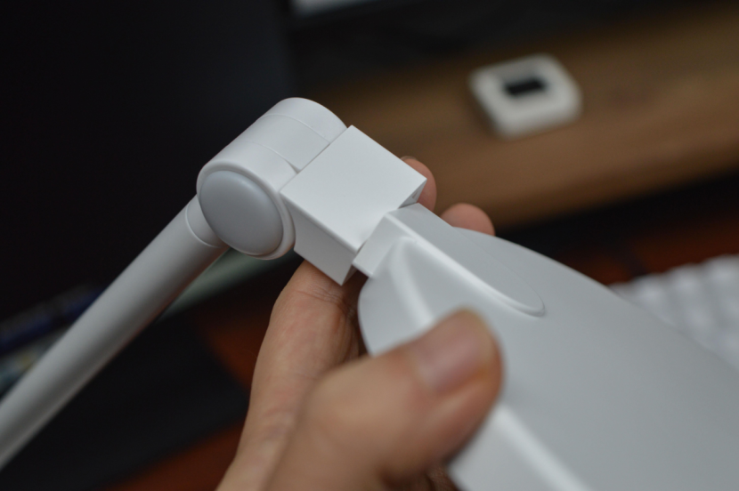 灯臂与灯头连接部位支持高度、角度自适应调节,加上中段支持上下调节,可以适应许多使用空间,小孩长高也可以正常无虞使用。并且调节的时候阻尼感清晰顺手,固定好之后也很稳妥,回馈感非常不错。