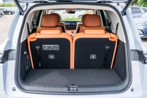 空间方面,26 款零跑C16 提供 5 座和 6 座两种选择,先说说 6 座版,它采用 2+2+2 的黄金布局,车长 4915mm,车内有效空间却有 3301mm,空间利用率高达 67.2%,这数据在同级里相当能打。后排能有这么宽敞的空间,多亏了几个巧妙设计:后翻式电驱把电机往后挪,给三排多挤出不少腿部空间,6 座版的二排双侧滑座椅特别实用,一键电动内侧滑能让两个座椅往里挪 70mm,家人之间互动更方便;一键外侧滑又能把中央通道从 160mm 拓宽到 190mm,老人小孩上下三排都不用弯腰挤着过。二排靠背最大能调到 155°,坐上去跟家里的沙发似的,长途坐车也不会觉得累。三排空间也做了升级,头部和腿部空间都多了 20mm,还设计了 95mm 的脚部空隙,就算 1 米 7 的人坐进去,双脚也能舒展开,再也不是以前那种 “小板凳” 式的体验。5 座版同样惊艳,二排腿部空间有 961mm,坐姿高度 345mm,比很多同级竞品都要出色。最让人惊喜的是它的 “一键成床” 功能,不管是一二排组合还是二排折叠,都能变成一张近 2 米的大床,户外露营时,不用搭帐篷就能舒舒服服睡一觉。后备箱空间更是灵活,常规状态下有 692L,能装下 9 个 20 寸行李箱,放倒座椅后最大能到 1663L,自行车、露营装备、滑雪板这些大件都能轻松装下,周末带全家去户外,再也不用纠结东西装不下的问题。此外,26 款零跑C16 直接把 “冰箱彩电大沙发” 给配齐了,这在 20 万内的车型里可太少见了。8.1L 的直筒式冰箱藏在扶手箱里,能装 8 瓶 550ml 的矿泉水,制冷12 分钟就可以从 32℃降到 0℃,制热 16 分钟能从 23℃升到 50℃。夏天出门,随时能喝到冰饮;冬天带孩子,还能热个牛奶,特别方便。而且它功耗低,不会太费电,食品安全也符合国家标准,用着放心。
