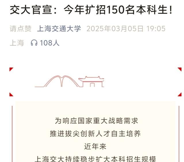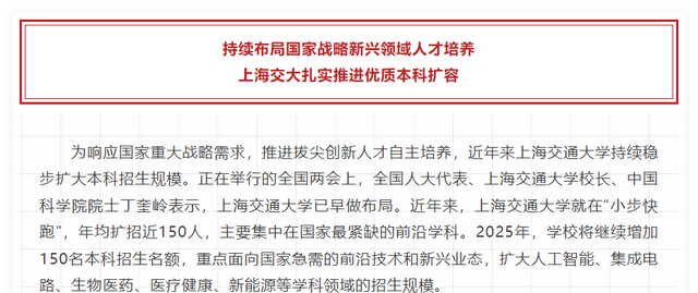 清华大学、北京大学、上海交通大学等顶尖高校的扩招计划尤为引人注目。这些学校不光增加了名额,还在培养模式上下了大功夫。比如清华大学设立本科通识书院,专注于“人工智能+多学科交叉”的复合型人才培养;北京大学则依托元培学院、工学院等,瞄准国家战略急需的基础学科和新兴领域。这些看似“高大上”的招牌,实际上就是在为国家科技自立自强“铸魂”。而且,这种培养模式的升级,势必会对未来的就业市场带来深远影响。
