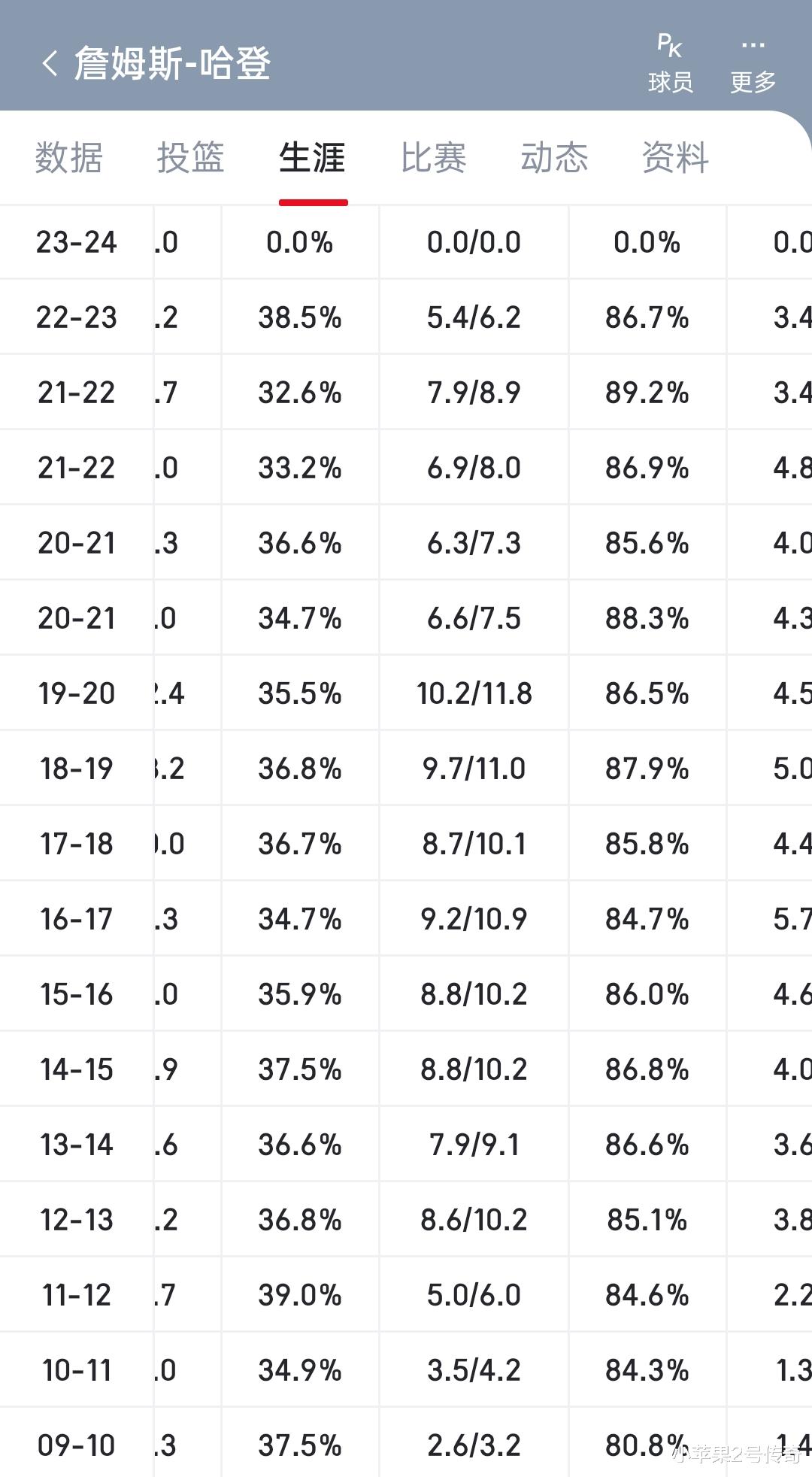 而他大哥金轮法王杜兰特职业生涯罚球上双只有一个赛季,而被登迷强行绑定09双雄的库里更是一个赛季罚球上双都没有,甚至17年职业生涯里罚球过5都很少。而哈登17年职业生涯赛季场均罚球<5次的只有3个赛季,两次还是他新秀第一年和第二年。