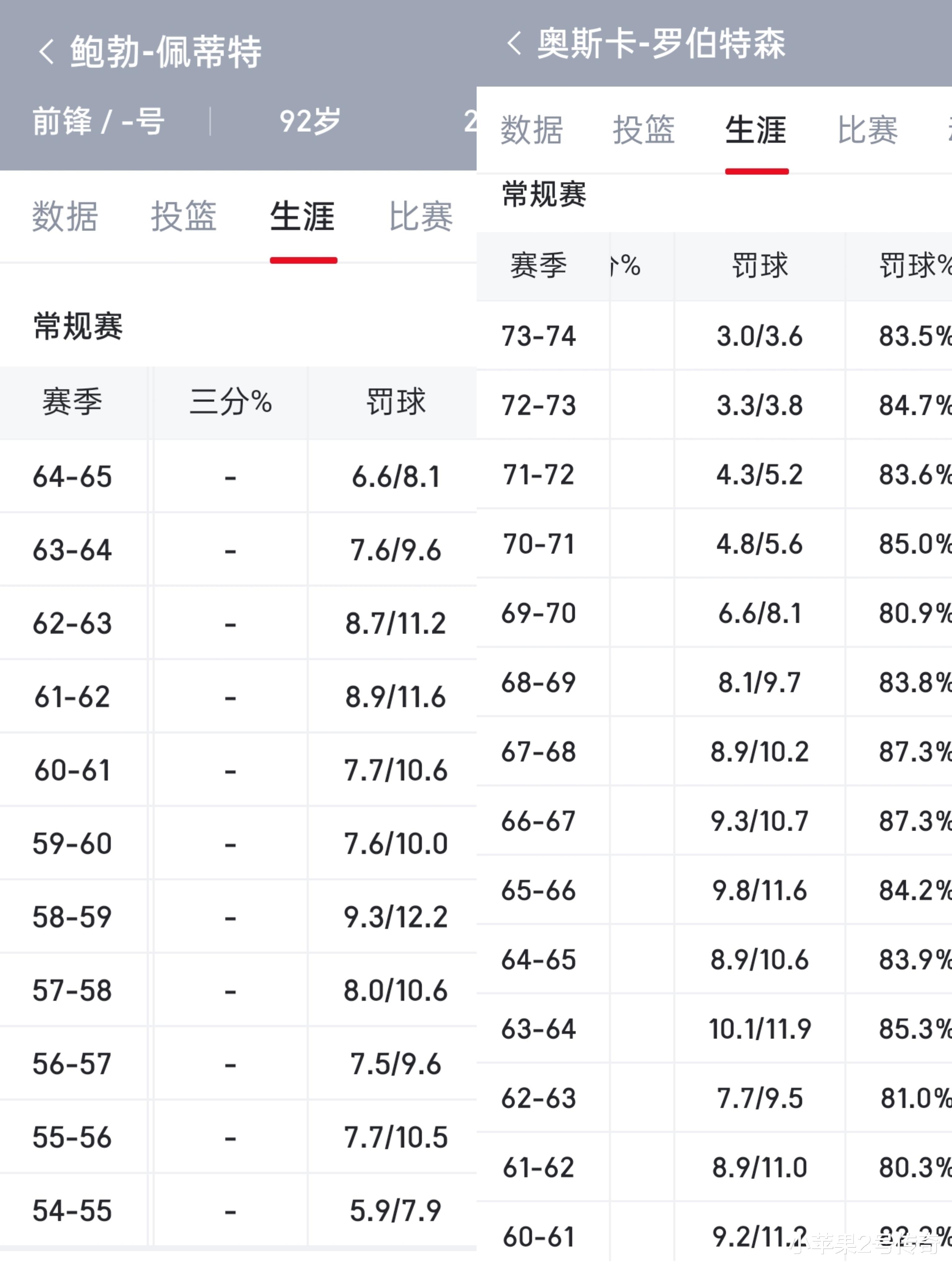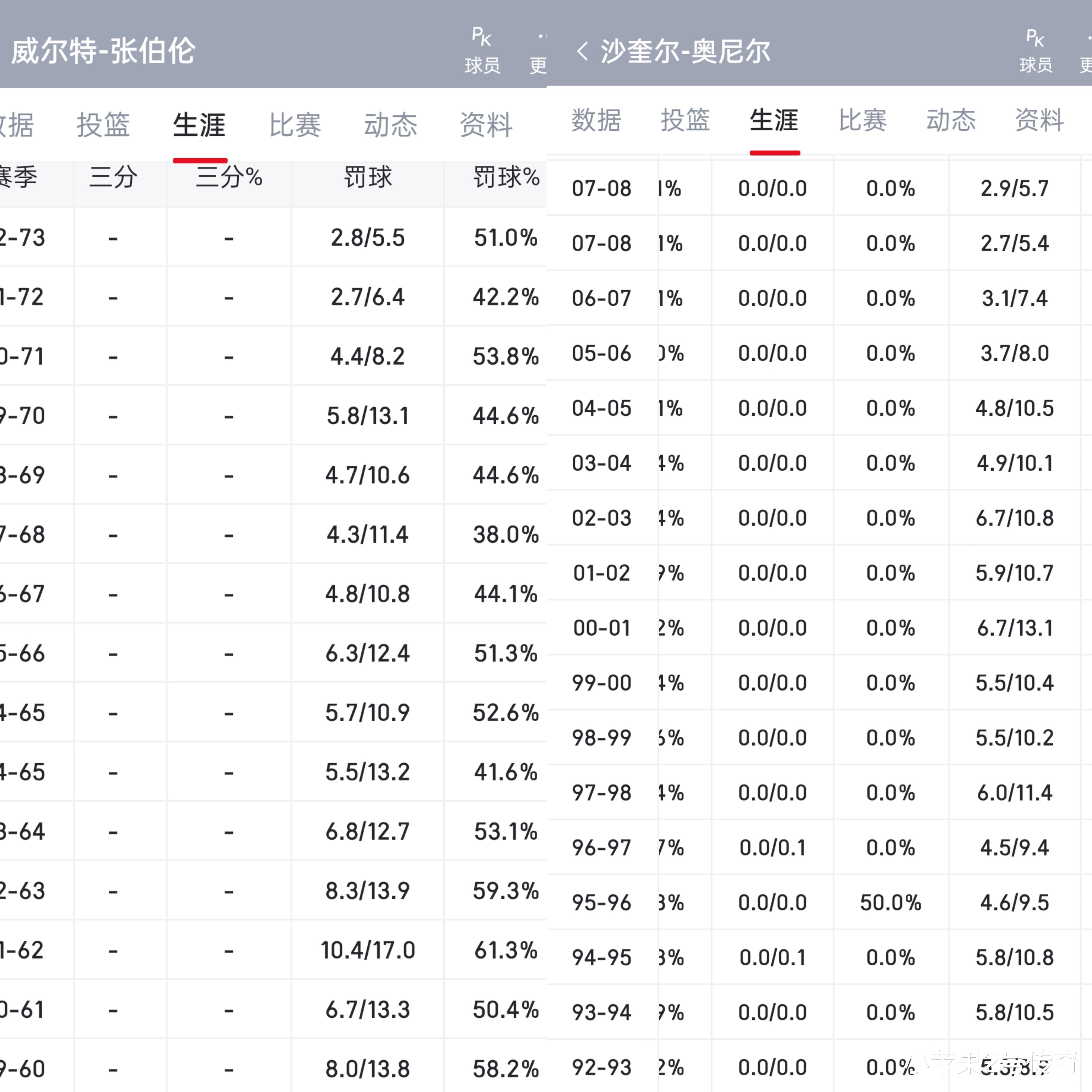 这7次到底有多夸张,在通过一个数据来对比,乔丹职业生涯罚球上双只有2个赛季,科比只有3个赛季,詹姆斯职业生涯也是截止目前为止只有3个赛季赛季罚钱上双,也就是说乔丹、科比、詹姆斯三个人加一起接近60年职业生涯才能够超越他一个人。