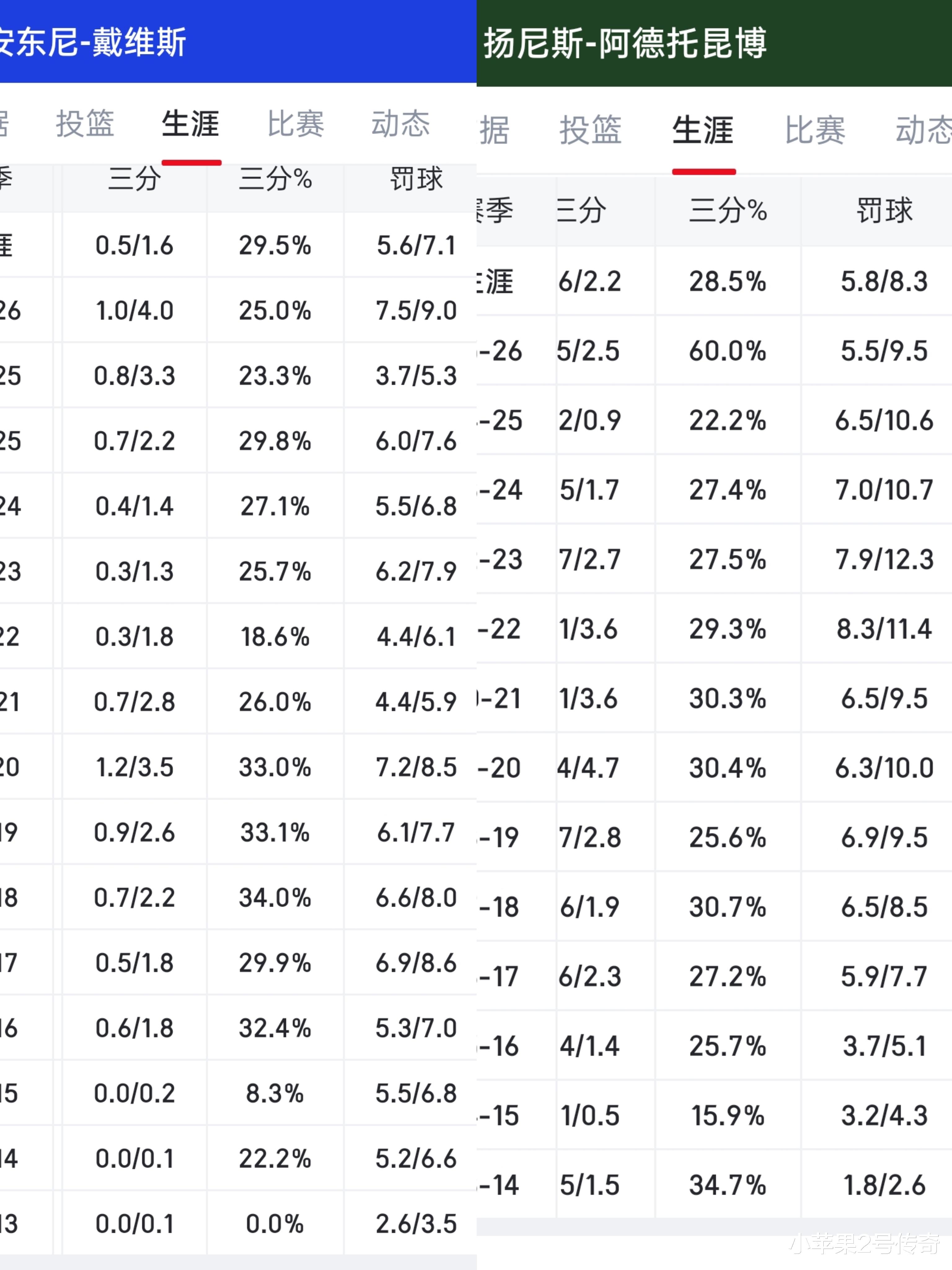 我们在对比一下当赛季得分榜第二的球员,17-18赛季场均得分第二球员是浓眉,那个赛季他场均28.1分,场均8次罚球,而上赛季场均得分榜第二的球员是字母哥,场均30.4分,场均10.6次罚球,而这两位得分榜第二的球员剪掉罚球浓眉是20.1分,字母哥则是19.8分,也就是说都不算罚球浓眉只比哈登的得分少0.1分,而字母哥和亚历山大差了足足的3.8分。