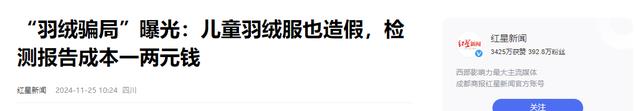 信源|红星新闻—“羽绒骗局”曝光:儿童羽绒服也造假,检测报告成本一两元钱