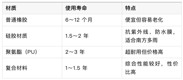 ✅硅胶材质:1.5~2 年,抗紫外线、防水膜,适合南方多雨;