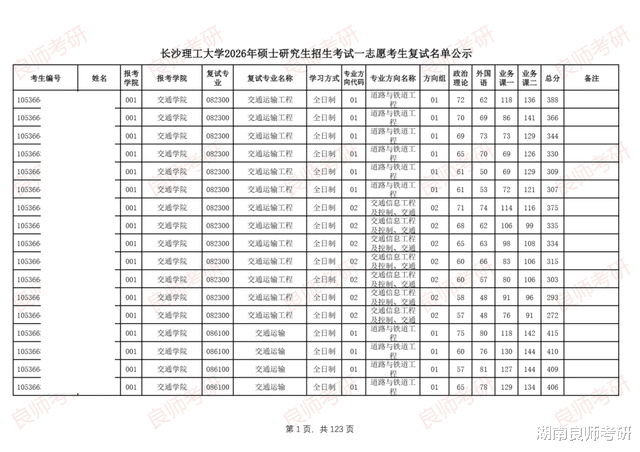 长沙理工大学26考研复试一志愿完整名单有124页。