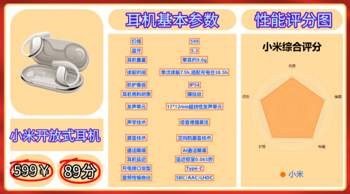 第六款推荐、小 米 开放式耳机 | 参考价:599元 | 蓝牙5.3