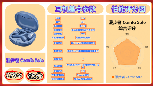 第五款推荐、漫 步 者 Co m fo S o lo | 参考价:379元 | 蓝牙5.3音质评分:71分