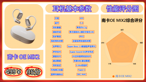 第二款推荐、南卡 OE MIX2 | 参考价:499元 | 蓝牙5.4音质评分:92分