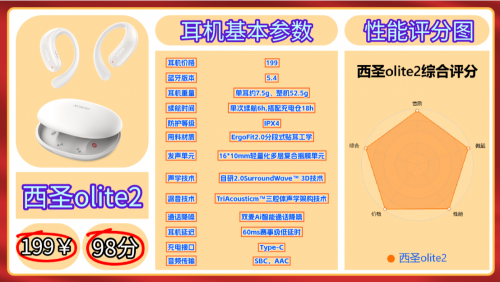 第一款推荐、西圣olite2| 参考价:199元 | 蓝牙5.4