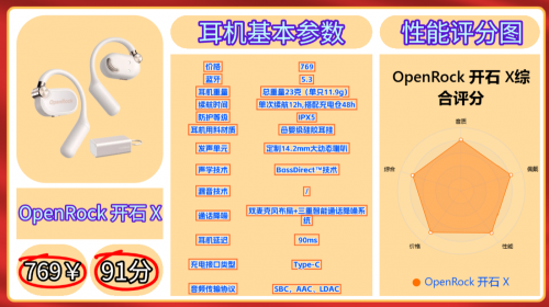 第十款推荐、O pe n Ro ck X | 参考价:769元 | 蓝牙5.3音质评分:79分