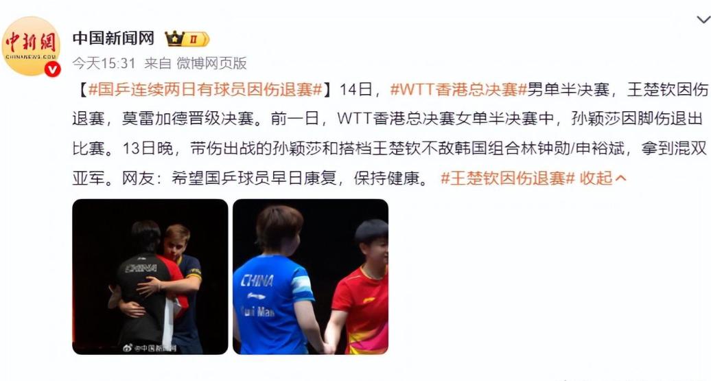 其中详细描写了王楚钦、孙颖莎的因伤退赛的具体情况。