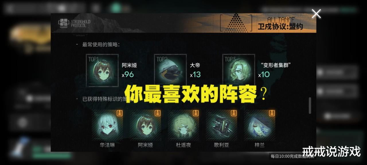 有玩家评选出了卫戍协议里最强的13张卡,红豆、远山、伊内丝、华法琳、远山、缪尔赛思、异客、淬羽赫默、风丸等,其实除了这几张卡,戒戒觉得还有好多也很不错,比如诗怀雅,二本风丸三本诗怀雅,战力顶点,诗怀雅更是逆天,阿米娅叠满buff配灵巧可以单防两路,炸一下盾哥都吃不消。还有铃兰也还行,谢拉格和维多利亚有就拿,转电表也可以拿一下。