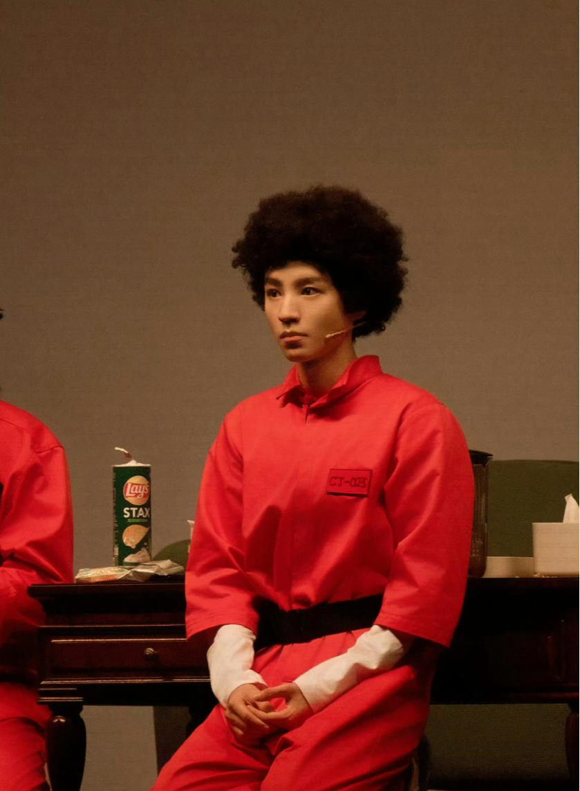 更有意思的是,这部话剧里,王俊凯不止演一个角色。130分钟里,他忙着“精分”:一会儿是放荡不羁的搭车青年,一会儿是顶着爆炸头、眼神呆萌的逃犯,转头又变成法庭上凌厉辩驳的劫匪。观众看得眼花缭乱,忍不住感叹:“这是一个人演的?连指尖都在演戏啊!”