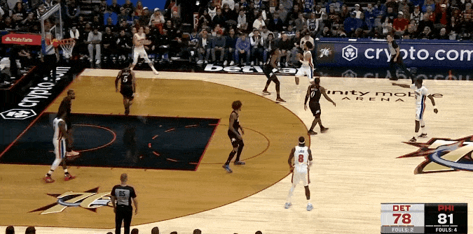 NBA常规赛,76人对阵活塞的比赛正在进行中。