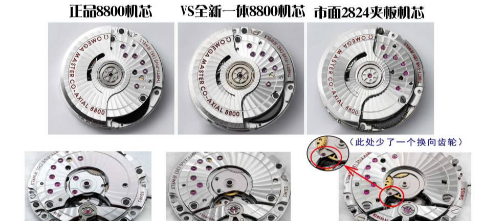 而VS全新8800一体机芯和正品一样,所有宝石,齿轮,螺等小配件都是真的一点都不用担心配件掉落造成机芯故障的风险,这也是二者之间的区别,完全不是一个级别的产品。