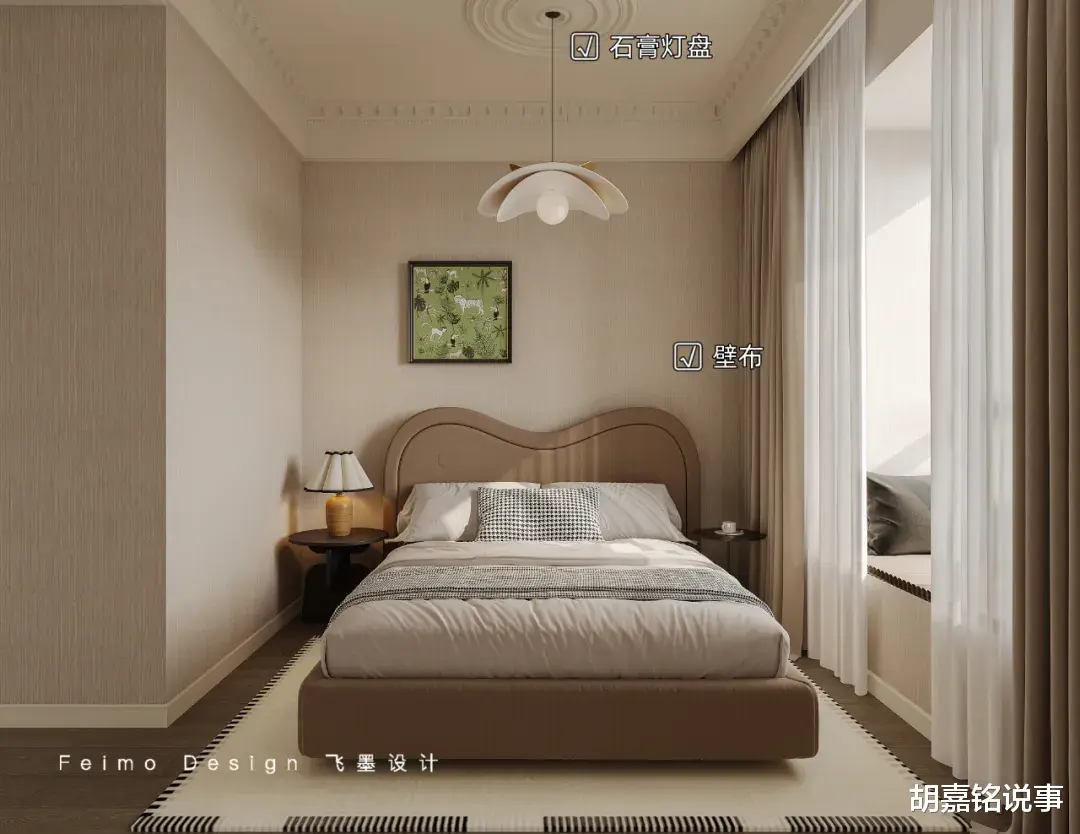 ●设计亮点:次卧墙面设计壁布装饰,提升家居质感。