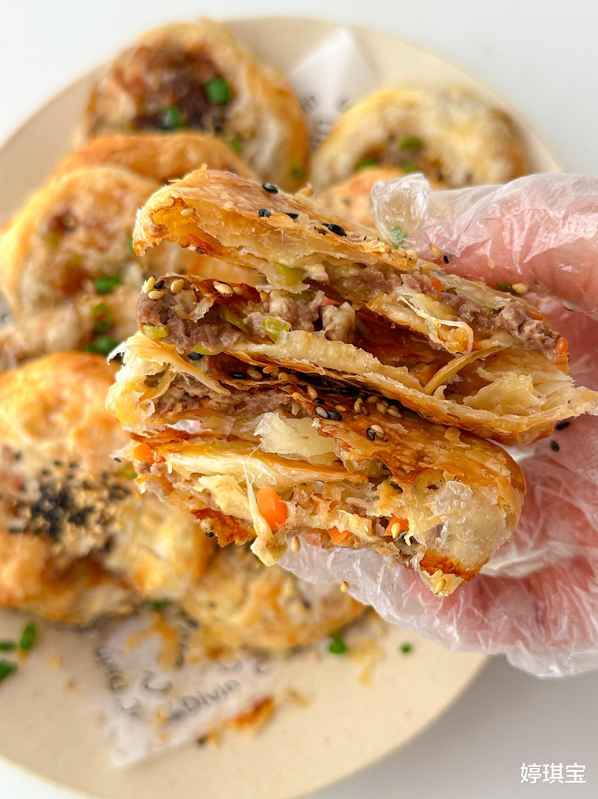 那是我第一次发现,原来西式芝士与中式牛肉能碰撞出如此奇妙的火花——酥皮在舌尖层层绽放,牛肉馅裹着拉丝的芝士,咸香与奶香在口中缠绵共舞。