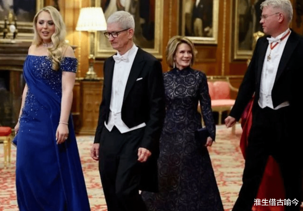 旁边陪着的蒂姆·库克,一袭标准燕尾服配金丝眼镜,表情轻松,反而衬得蒂芙尼有点放不开。