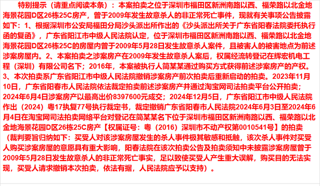 深圳市福田区一栋房产在法拍平台挂拍,曾以839.7万元成交,买房者得知此房曾涉故意杀人案后产生抵触,请求撤销交易。