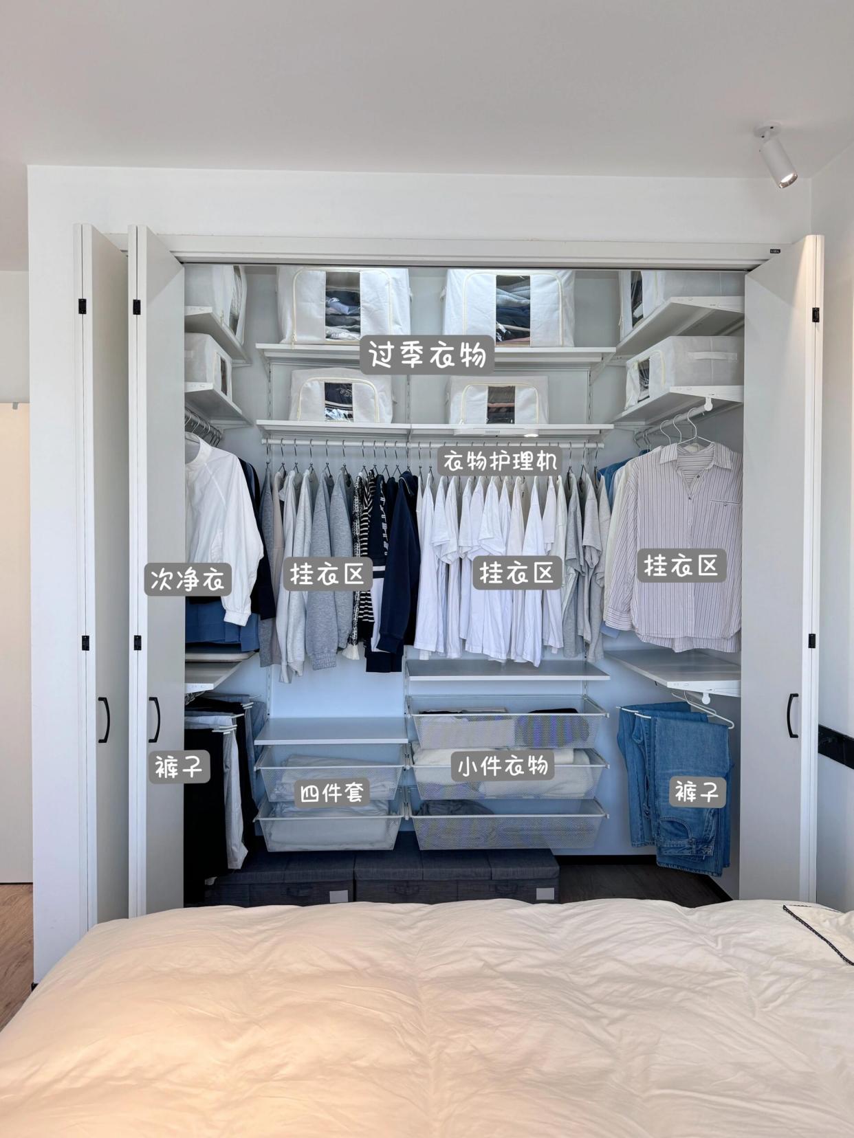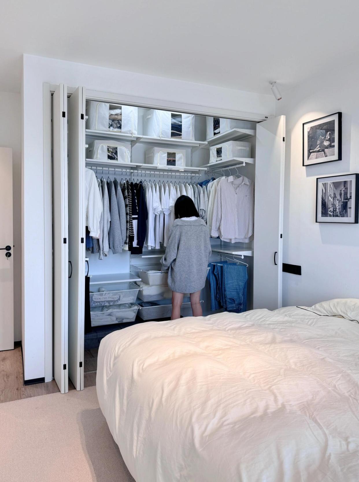 不到3㎡的地方,可以存放上百件衣物,上方还能放置过冬的几床大棉被。