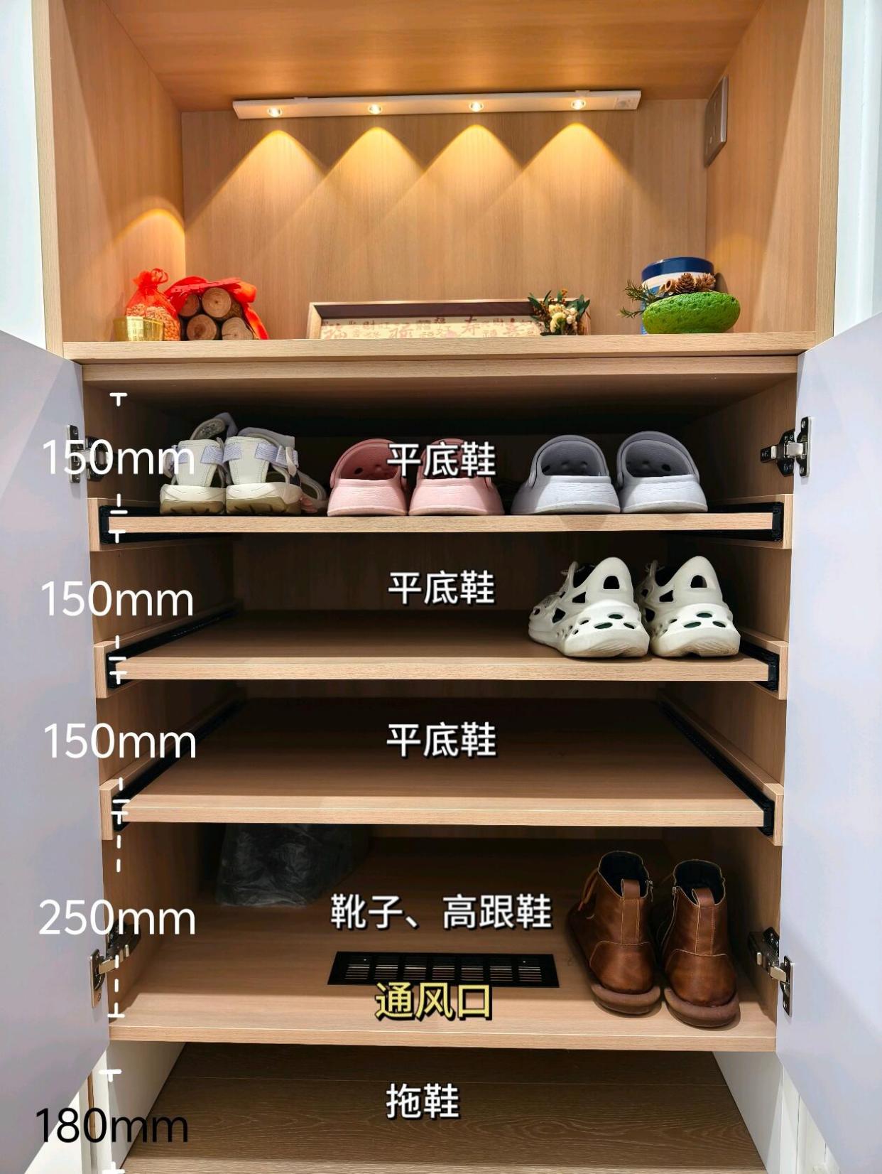 鞋柜中间镂空处的背板前移,以免太深,不仅不好看,也不好够东西。