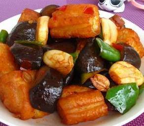 1. 茄子先用盐腌一下, 杀出些水分, 再放入无油的锅中煸炒,直至茄子变色发软半熟, 这样下一步炒茄子时就不会吸油;