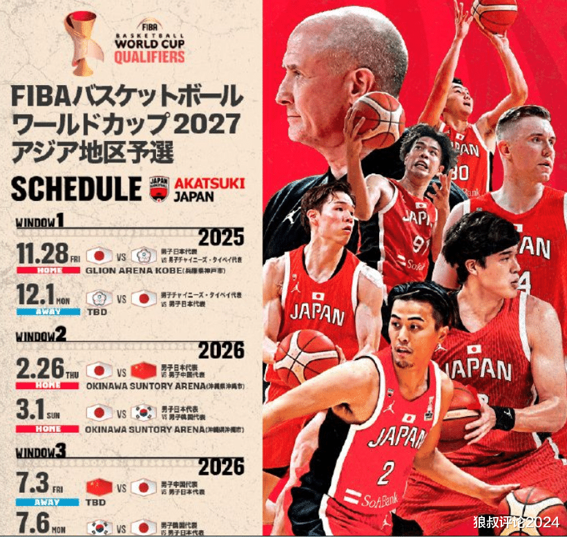 第一窗口期,日本男篮将分别在主客场对阵中国台北。