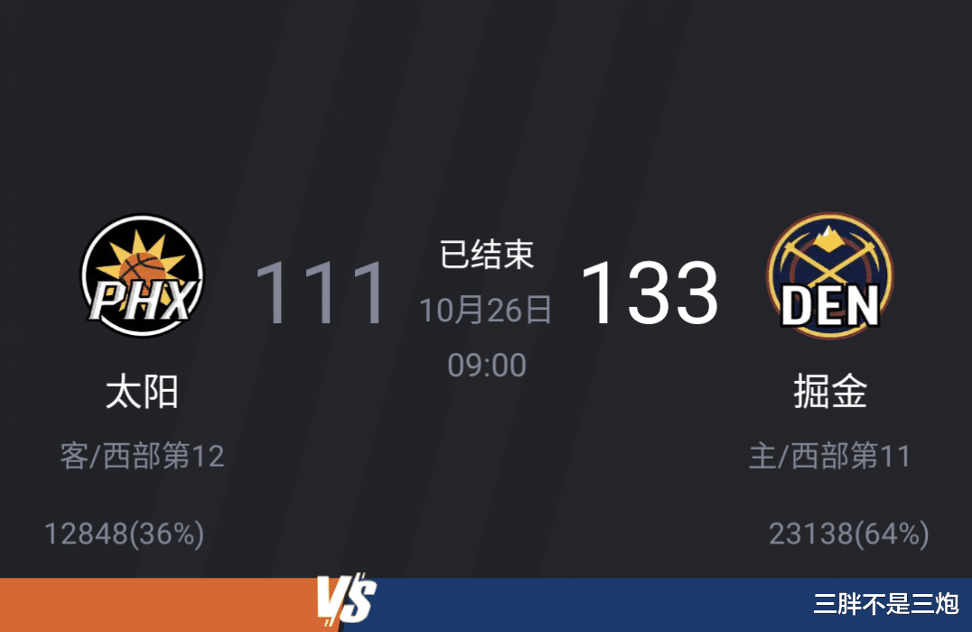 掘金:全队133分、总命中率51.2% 、三分命中率29.0%