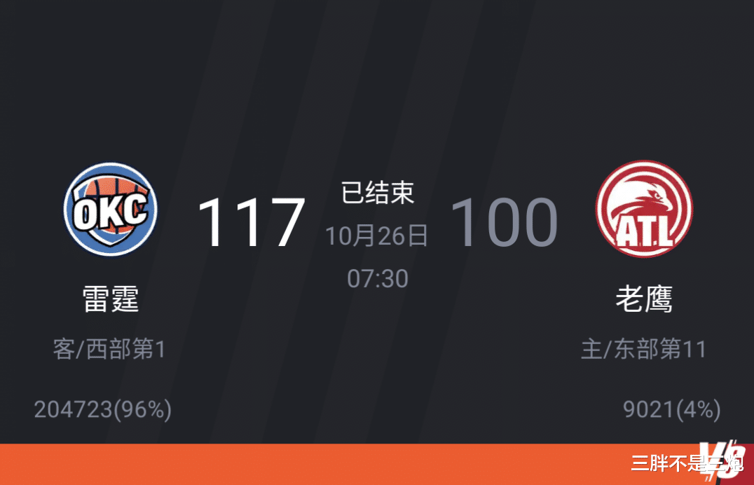 俄克拉荷马雷霆117 :100 亚特兰大老鹰