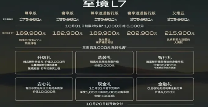 咱们先说说这个定价有多狠。别克至境L7车长超过5米,轴距达到3米,妥妥的中大型轿车尺寸,但起售价只要16.99万,这个价格不仅比凯美瑞的17.18万、迈腾的17.49万还便宜,甚至跟速腾这种A级车的顶配都重叠了。要知道,之前官方预告的时候可是说"30万级新能源智能豪华轿车",结果最后价格腰斩,直接打了五折多,这诚意确实拉满了。