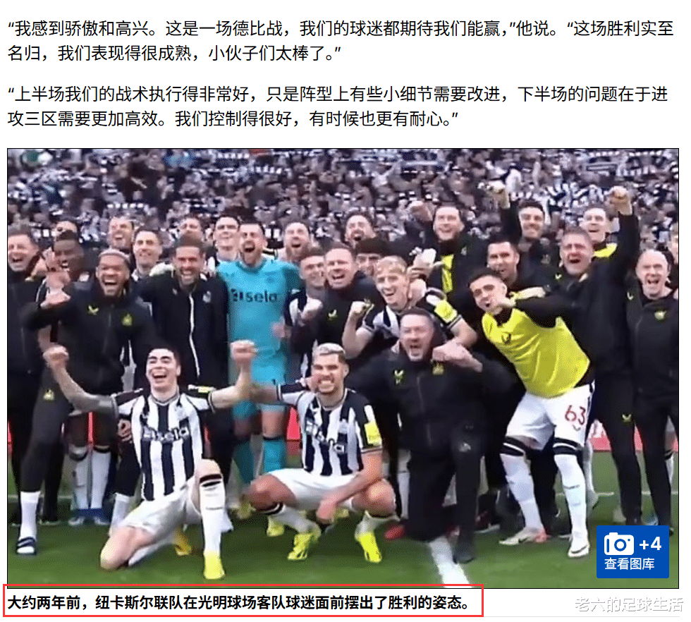 赛后桑德兰让他们球迷留下与球员和俱乐部的工作人员一起合影来讽刺之前纽卡在他们主场晋级英足总杯后的嘲讽行为。