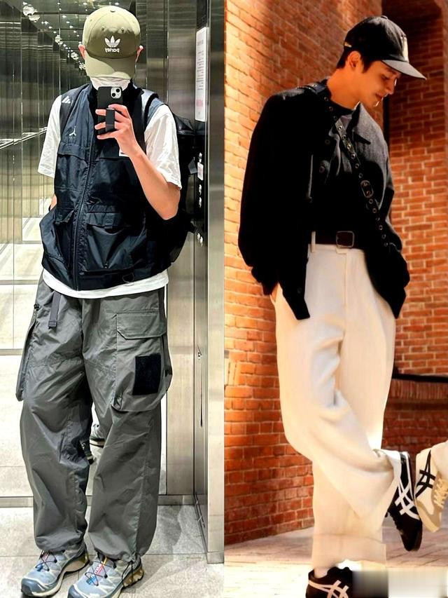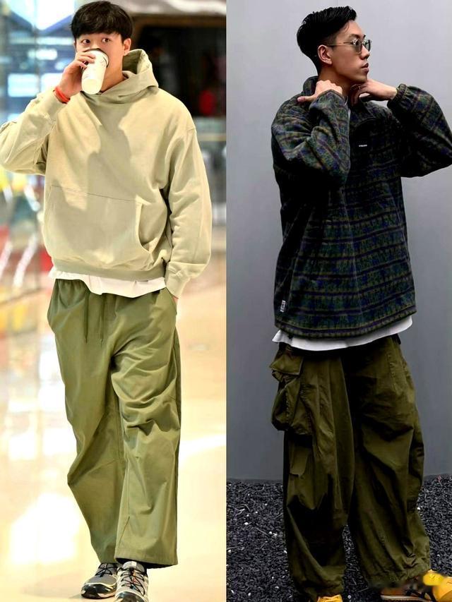 束脚裤别碰廉价材质和沉闷黑灰,卡其或军绿带点拼接设计,低调有活力。