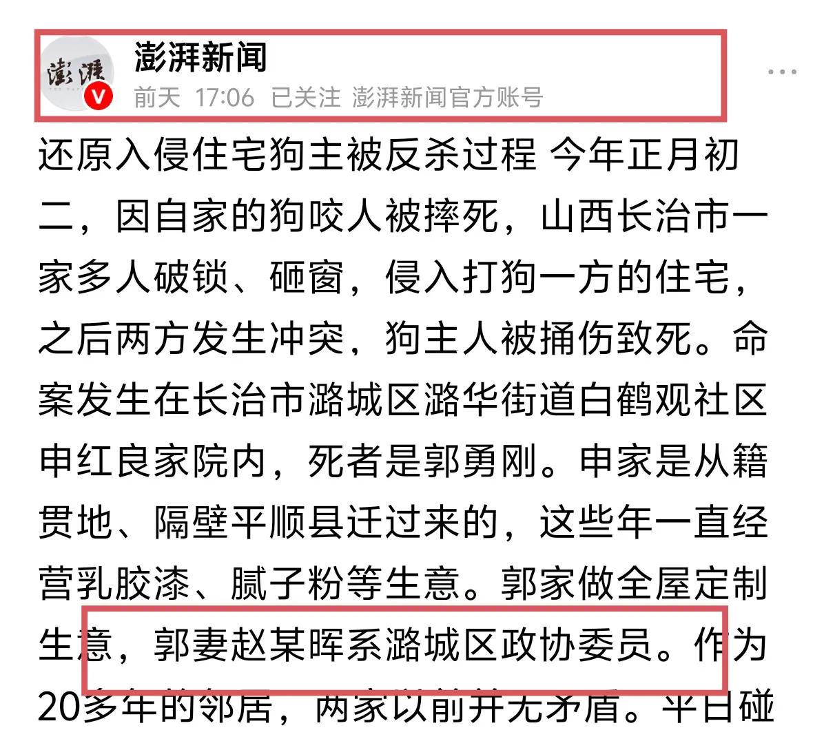 可以看出,郭某一家首先挑起祸事的是赵某晖。郭某刚是最不想惹事的,因为开始他都没去。家里人都去完了,他最后一个才到的,赤手空拳过去的,也只是挥了一下拳头而已。郭某刚的妹妹,接受采访的那个短发女的,也没有去,也是不想惹事的。