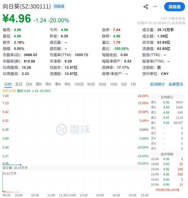 不过,要说这一天最“惨”的,还得是向日葵。这名字听着挺阳光,结果股价那是相当阴暗。它在竞价阶段就吃了20%的跌停,卖一位置上挂着**98万手**的卖单。这事儿怨谁呢?还得怪自己不争气。昨天晚上证监会发话了,说它之前的重组预案涉嫌误导性陈述,直接立案调查。这重组本来是想买个药企和材料公司,结果现在竹篮打水一场空,重组告吹,还得被查,股价不崩才怪。