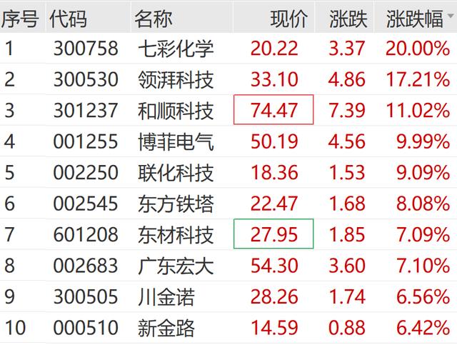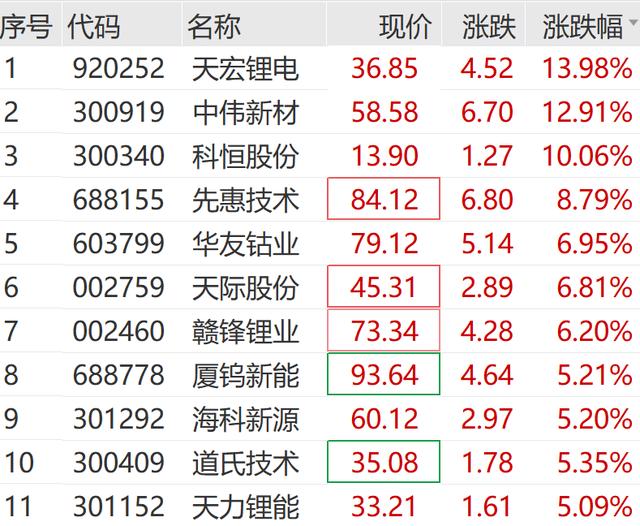 你看四川黄金,直接稳稳涨停;湖南白银也不甘示弱,涨超8%;还有华友钴业这些老牌有色股,都在跟着起哄。为啥它们这么硬气?最近锂电那边可是火得一塌糊涂,听说上游材料厂都忙得脚不沾地,满负荷生产。一来是国内外储能需求大爆发,二来是因为出口退税政策要变,下游企业都在抢着生产、提前交货,这一下子就把上游给带飞了。还有基础化工板块,七彩化学更是豪横,直接来了个20cm的大号涨停。